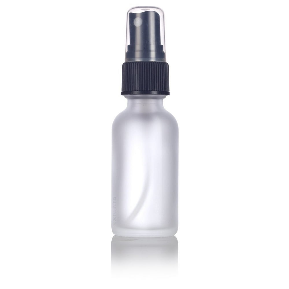 Frosted Clear Glass Boston Round Fine Mist Spray Bottle with Black Sprayer - 1 oz / 30 ml