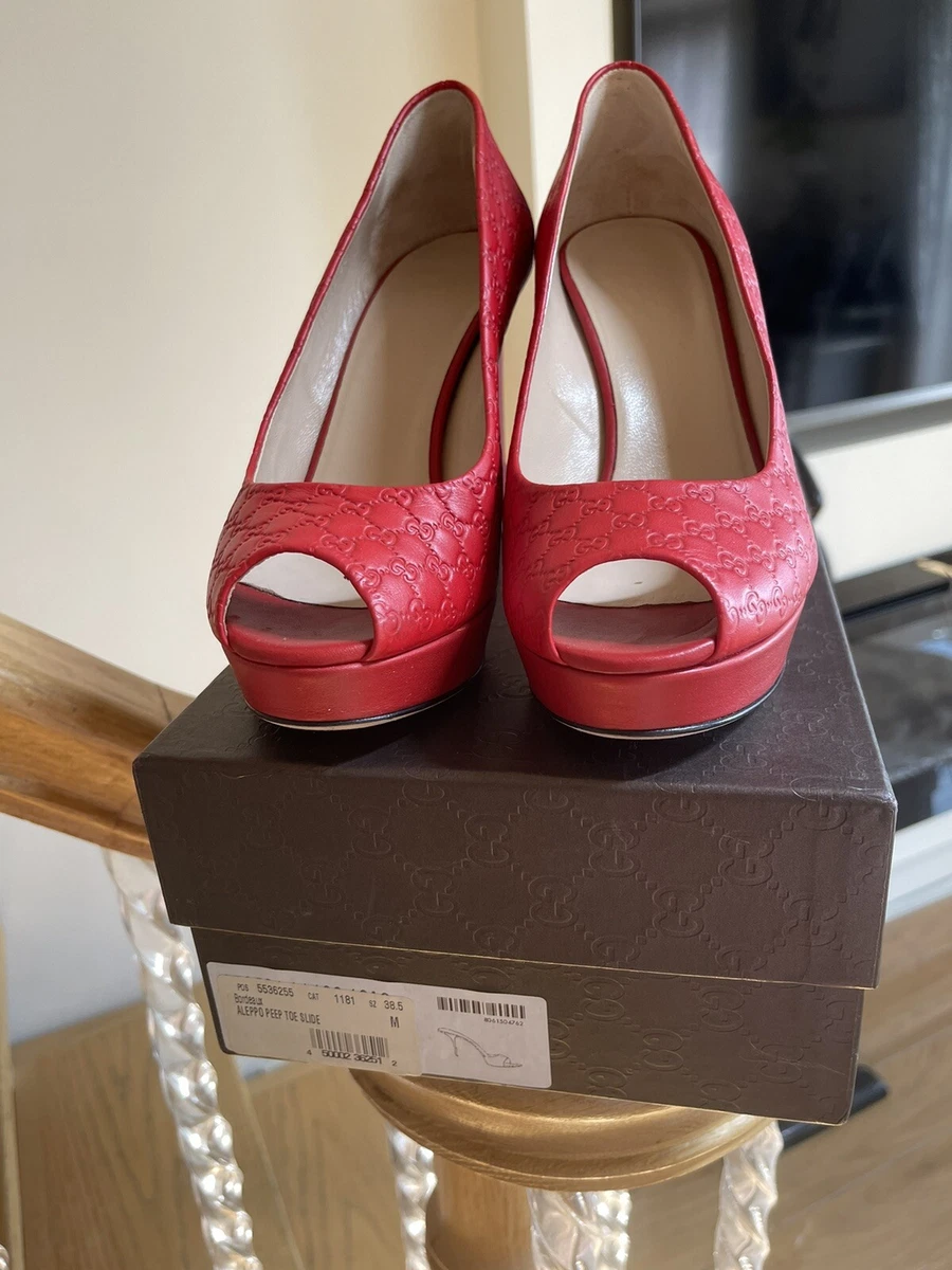 Authentic Red Gucci Shoes Women size 38/8 Leather Beautiful | eBay