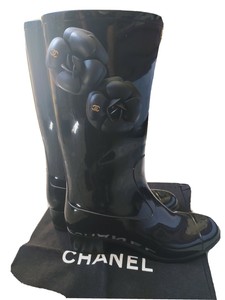 Chanel Boots Black Leather Rubber ref