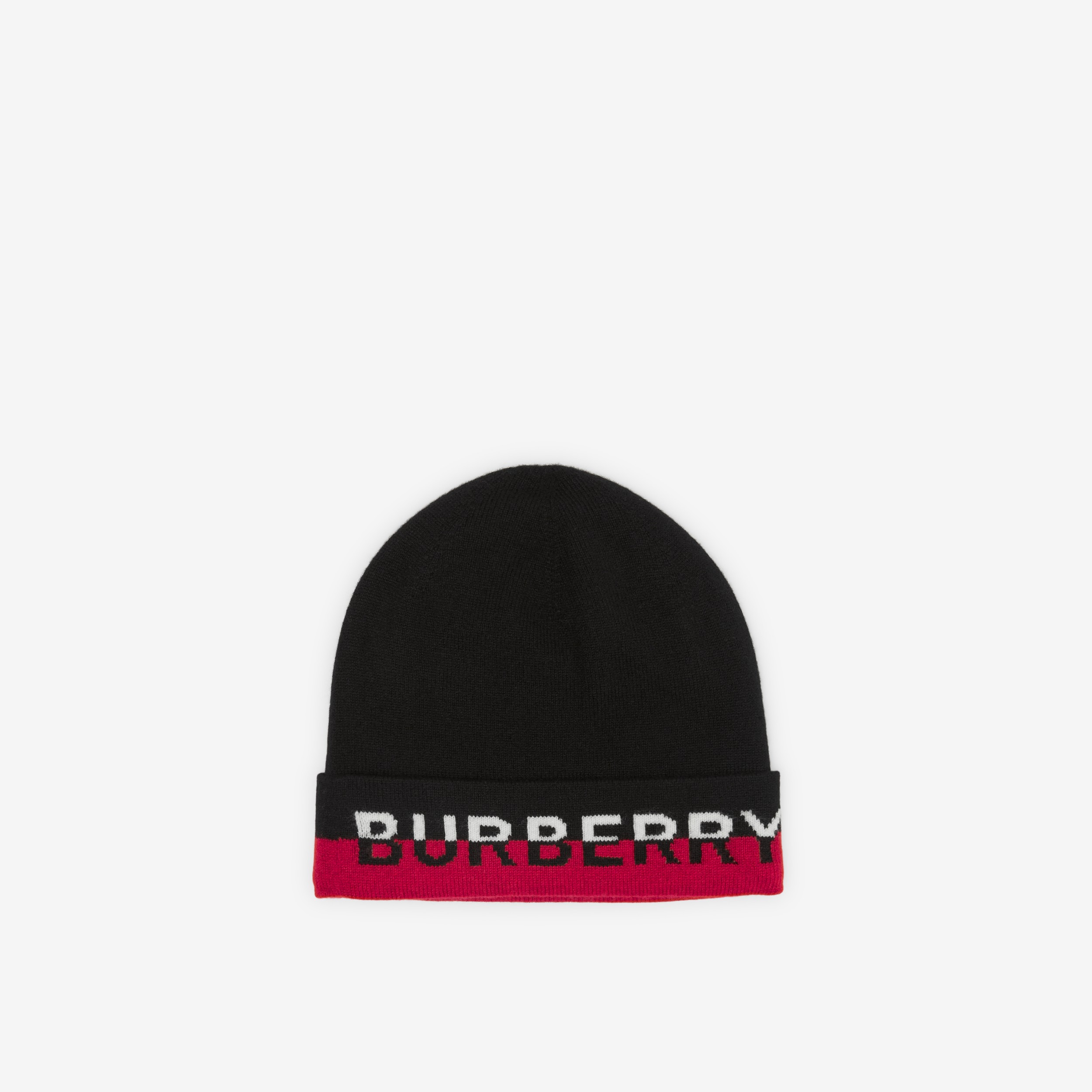 Logo Intarsia Cashmere Blend Beanie in Black/red/white | Burberry® Official