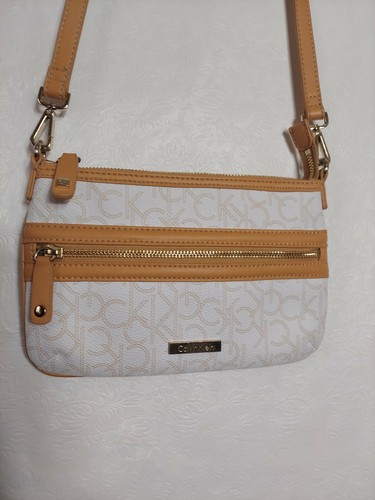 Calvin Klein White/Tan Signature Monogram Mini Crossbody Bag in Good Condition | eBay