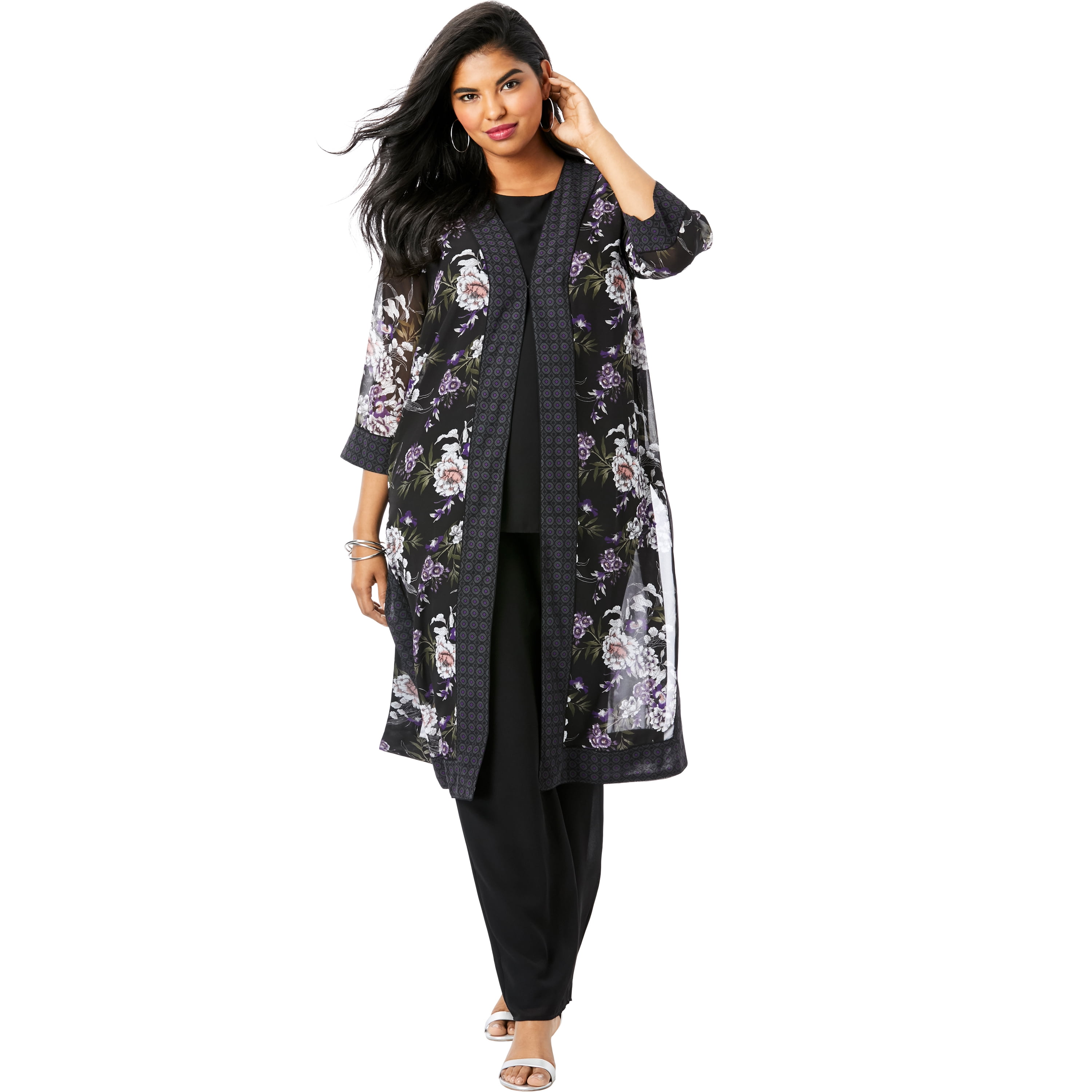 RM Richards 3 Piece Print Mesh Duster Pantsuit - Navywhite