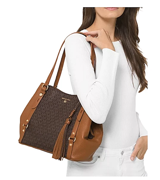 ?? Michael Kors Carrie Large Signature Shoulder Tote Brown/Acorn/Gold Org Pkg | eBay