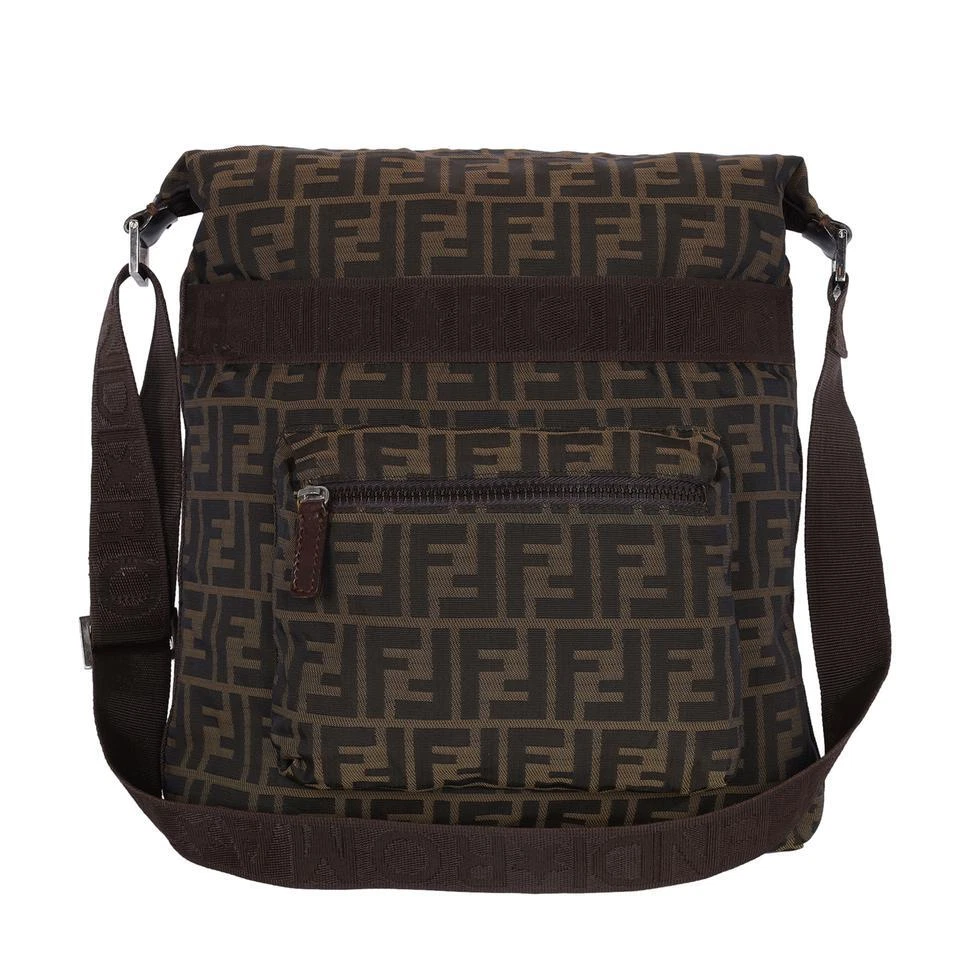 Fendi Front Zip Flat Zucca Large Canvas Bag (Authentic Pre-Owned) Leather Brown | eBay