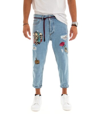 Pantalone Uomo Lungo Jeans Denim Chiaro